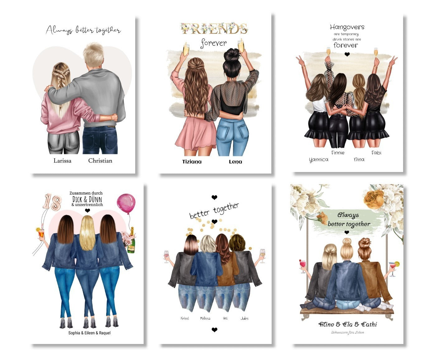 Personalisierte Geschenke für beste FreundinnenPersonalisierte beste Freundin Geschenke mit 1-8 Personen gestalten, eine moderne Geschenkidee für alle Freundinnen, auch für beste Schwestern & Mamas & Kolleginnen. Ein persönliches, besonderes und kreatives Geschenk für die beste Freundin, Freundinnen individuell angefertigt als Bild-Datei, Poster, Leinwanddruck, Kissen oder Decke ist eine tolle Geschenkidee. Erstelle schnell und einfach ein personalisiertes Bild Geschenk für deine Freundin & Freundinnen zum Geburtstag, zu Ostern, zu Weihnachten, zu allen Anläßen inkl. Live-Vorschau. So kannst du dein Wunschdesign direkt auf der Produktseite Live sehen + auch wieder ändern, bis es perfekt ist. Ein besonderes beste Freundin Geschenk mit deinem Wunschdesign und einer Live Vorschau auf der Produktseite bei bestefreundegeschenke.com.