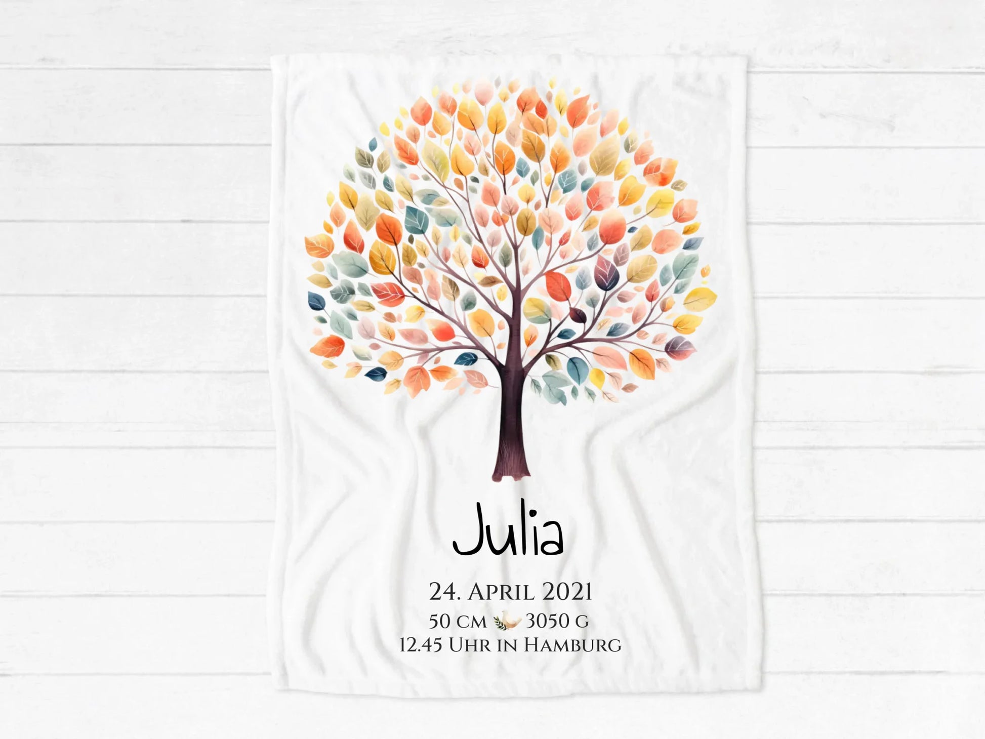 Personalisiertes Geburtsgeschenk / Taufgeschenk: Decke mit Lebensbaum. Jetzt gestalten!
