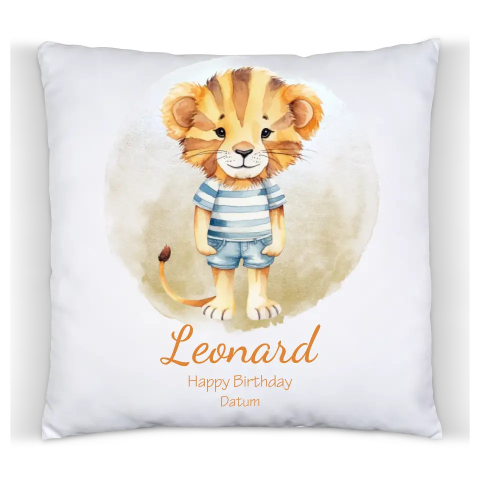 Geburtstag Geschenk Mädchen Junge | Weihnachtsgeschenk Kinder Kissen Geschenk mit Name personalisiert Löwe