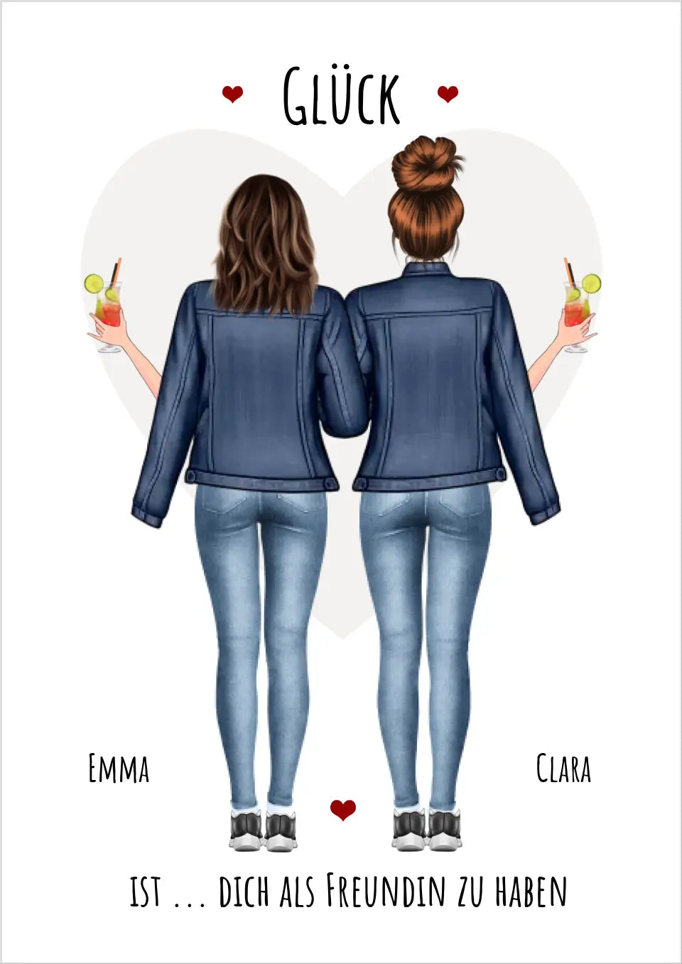 2 Freundinnen Bild | Poster Freundin Geschenk personalisiert Geburtstagsgeschenk | Geburtstag Schwester, Mama, Kollegin