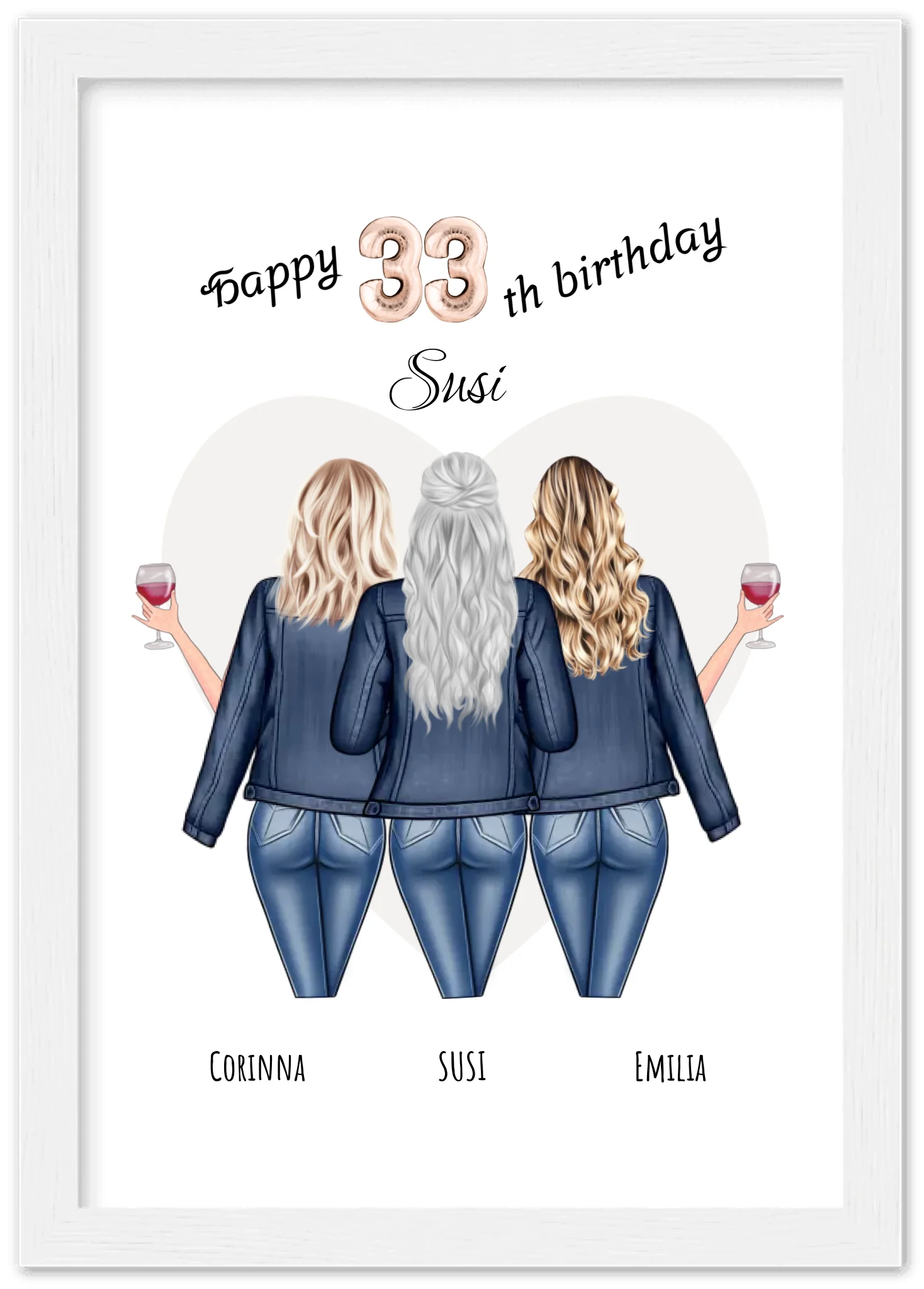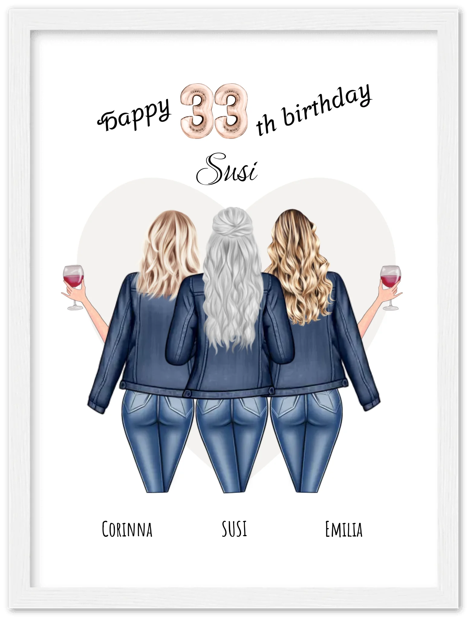 3 Beste Freundinnen Poster gerahmt - Beste Freundin Bild Geschenk Geburtstag - Geburtstagsgeschenk - Ostergeschenk - Geschenk Schwester