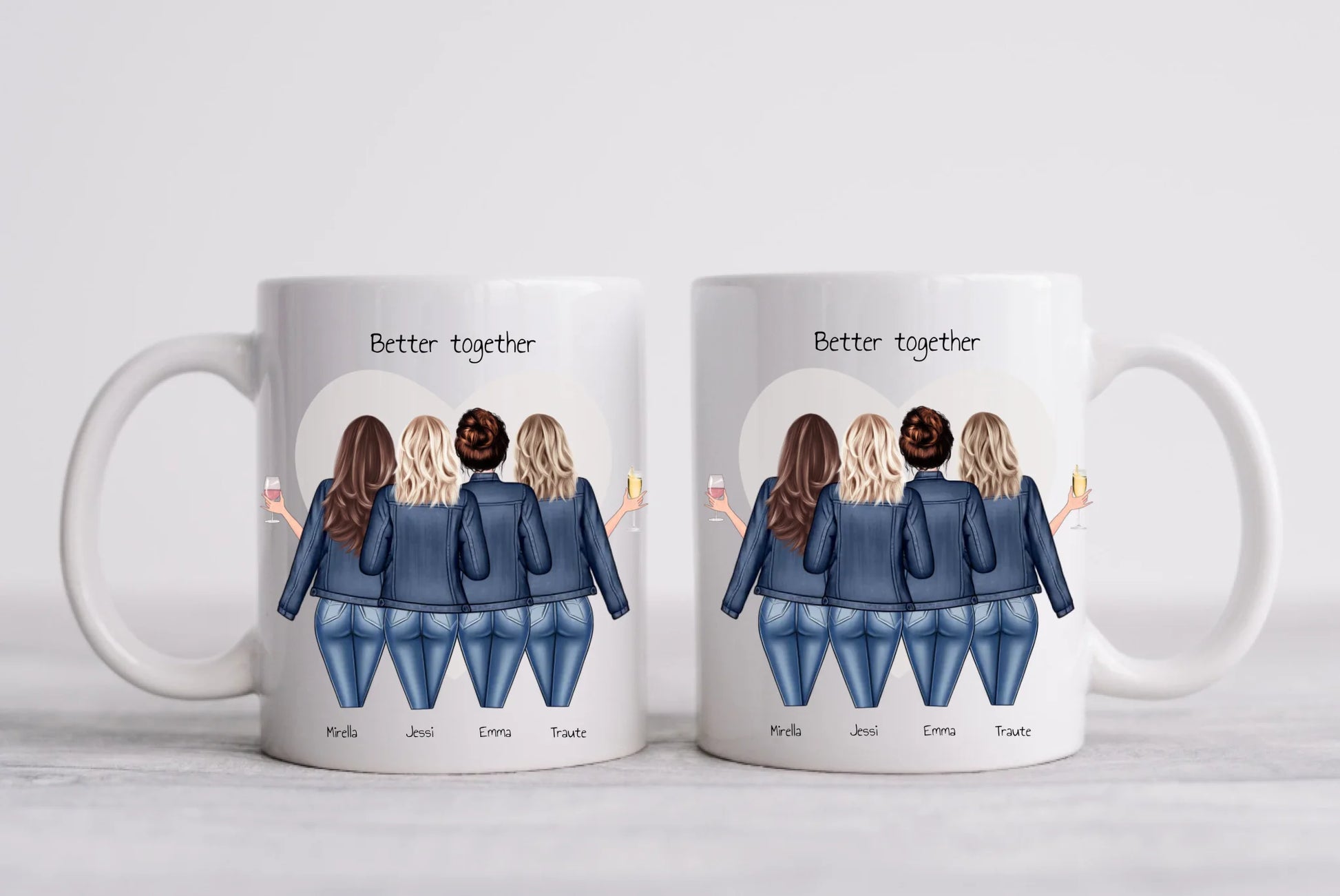 4 Beste Freundinnen Tasse personalisiert - Beste Freundin Geburtstagsgeschenk