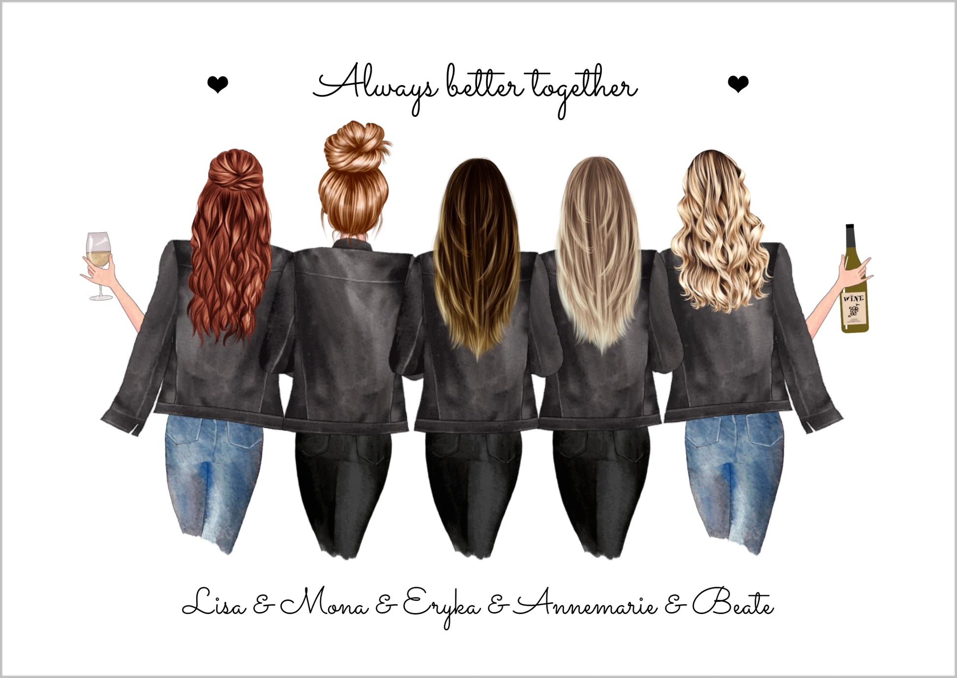 5 Freundinnen Geschenk als Bild-Datei oder Poster mit verschiedenen Motiven personalisiert inklusive Live-Vorschau deiner Personalisierung! Perfekt für jeden Anlass, einfach und schnell online gestalten.