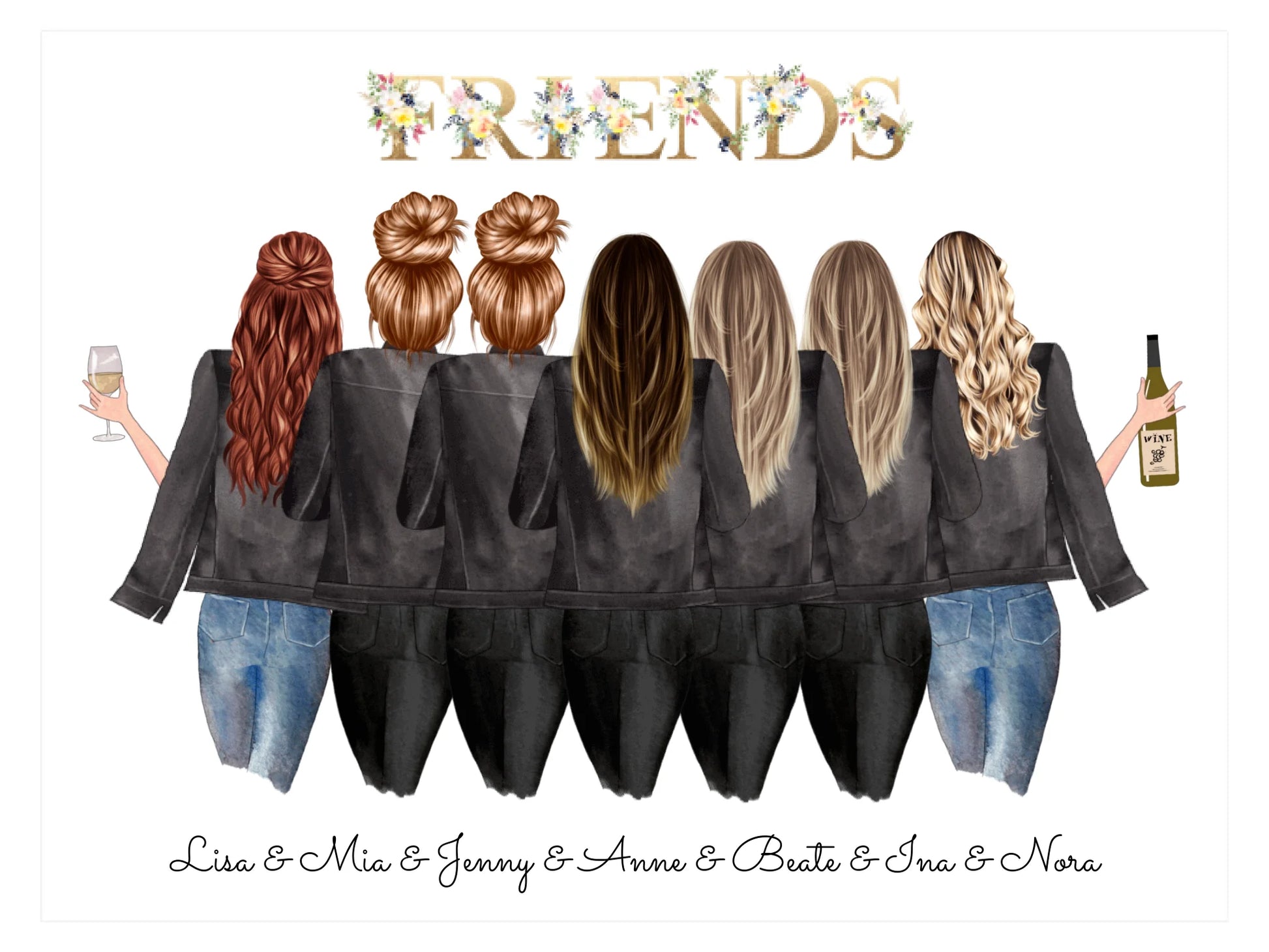 Beste Freundin Geschenk Poster personalisiert - 7 Beste Freundinnen Bild Geburtstagsgeschenk