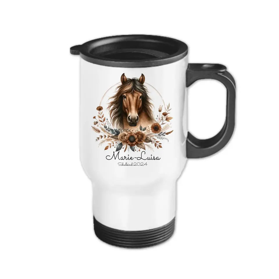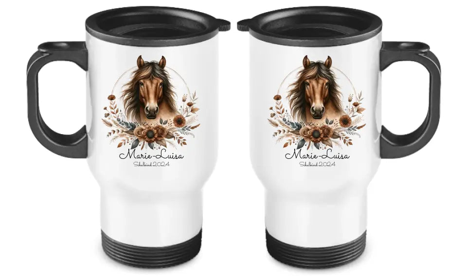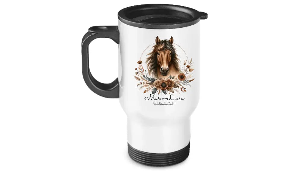 Einschulung Geschenk Schulkind Edelstahl Kinderbecher Pferd mit Name | Geschenk Einschulung & Geburtstag | Edelstahl-Thermobecher für Kinder personalisiert