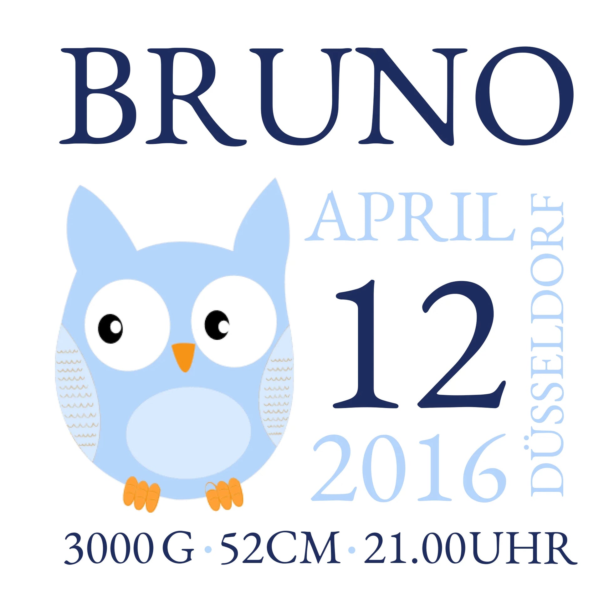 Eule- Personalisiertes Geburtsanzeige mit Namen und Geburtsdaten - Geburtskissen - Geschenk zur Geburt - Geschenk zur Taufe - Taufgeschenk