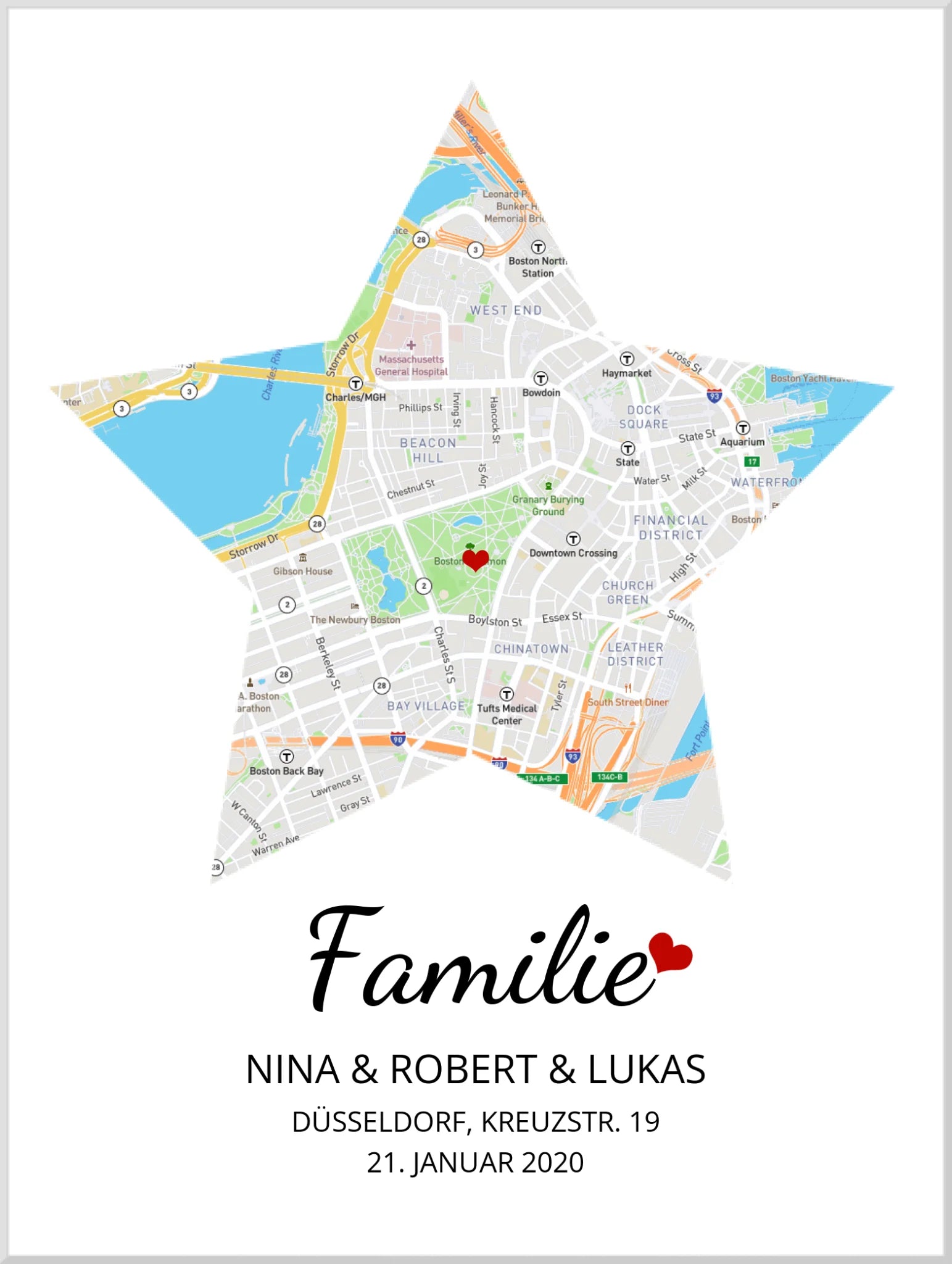 Geschenk Familie Poster personalisiert – Sternkarte & Stadtkarte – Wohnort Familie – Geschenk Einzug, Hochzeitstag, Jahrestag, Verlobung