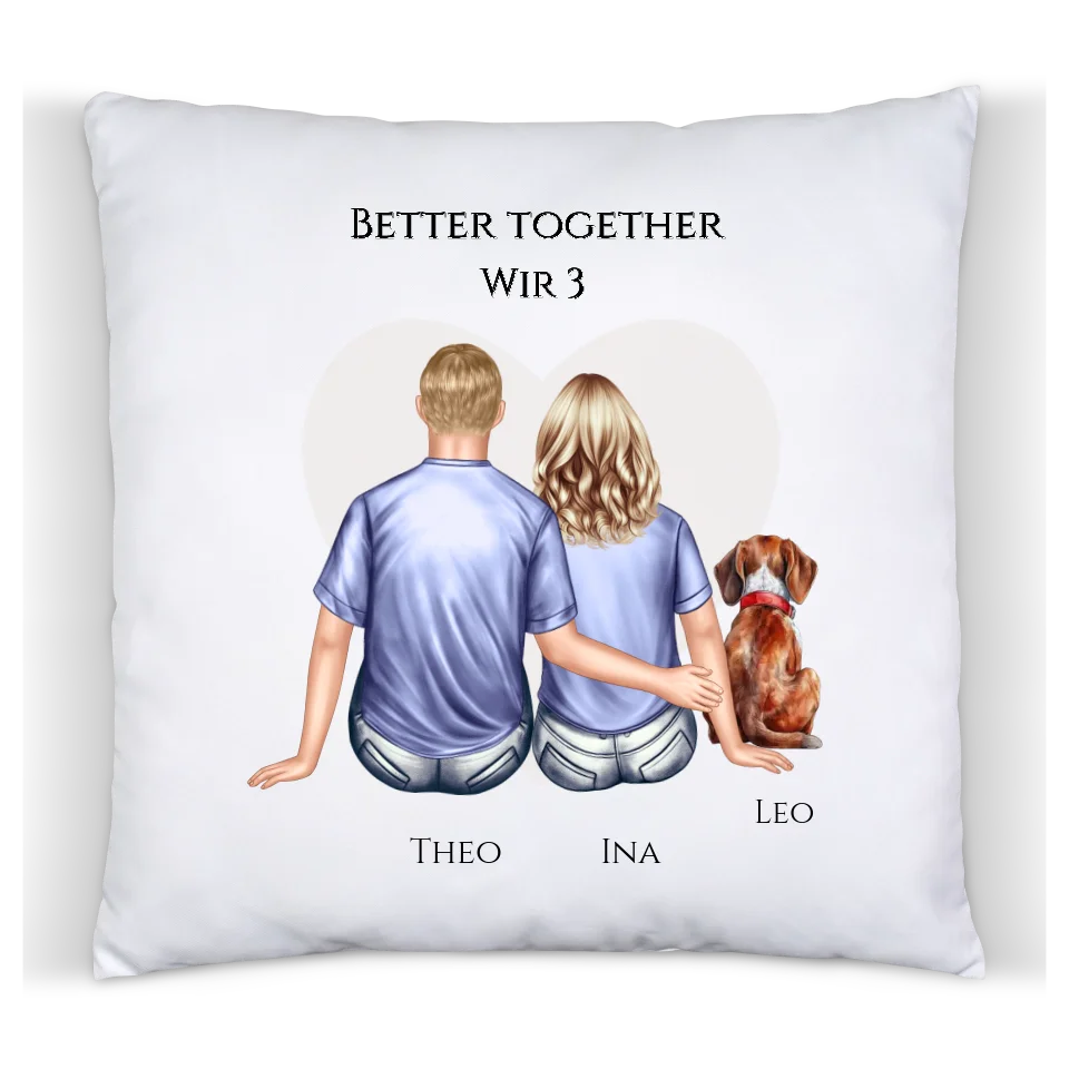 Paar mit Hund personalisiertes Geschenk Hundebesitzer - Deko Kissen mit Hund - Geburtstagsgeschenk Weihnachtsgeschenk