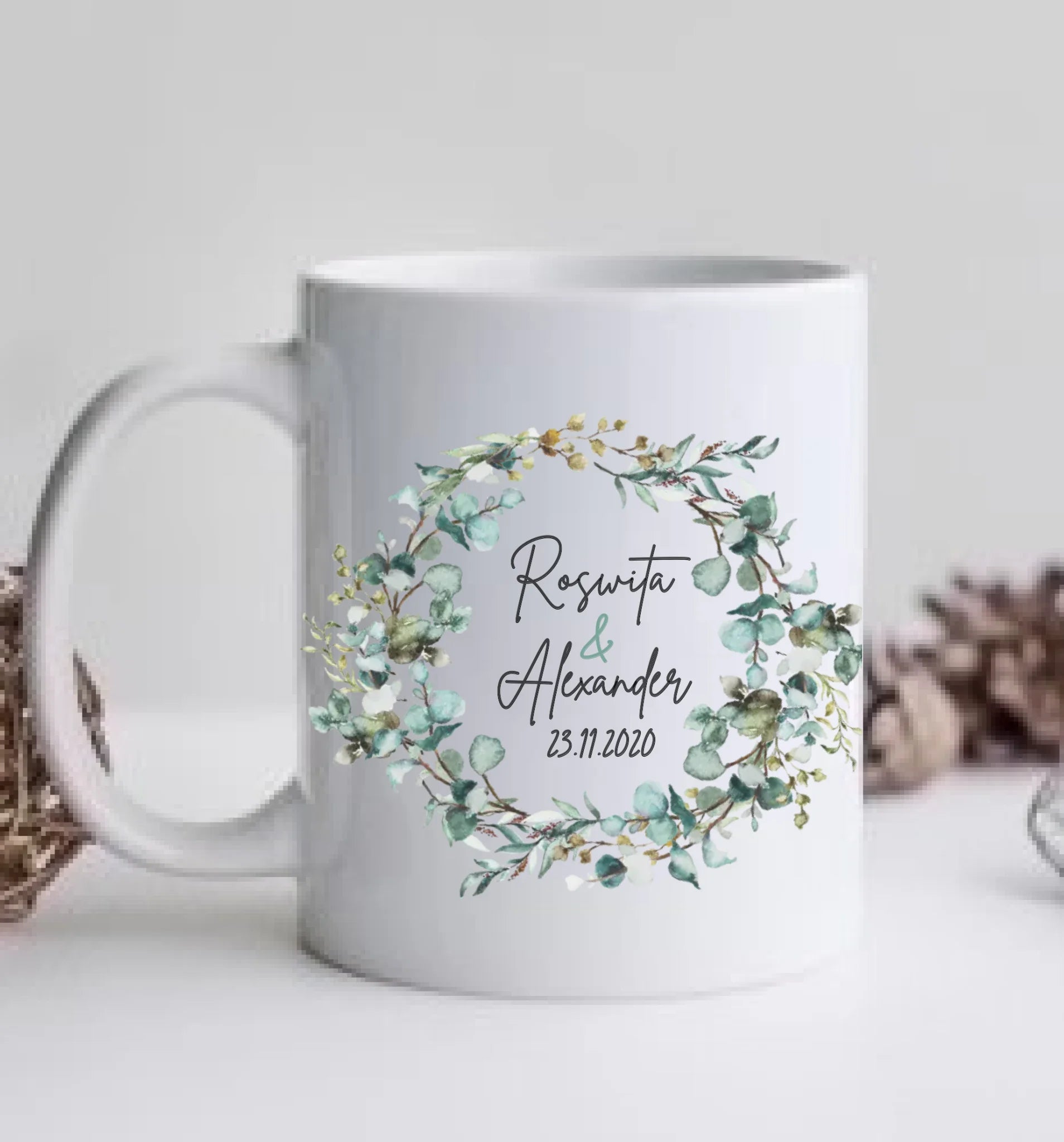 Personalisierte Hochzeitsgeschenk Tasse Eukalyptus Brautpaar, Ehepaar - Geschenk Hochzeit 2
