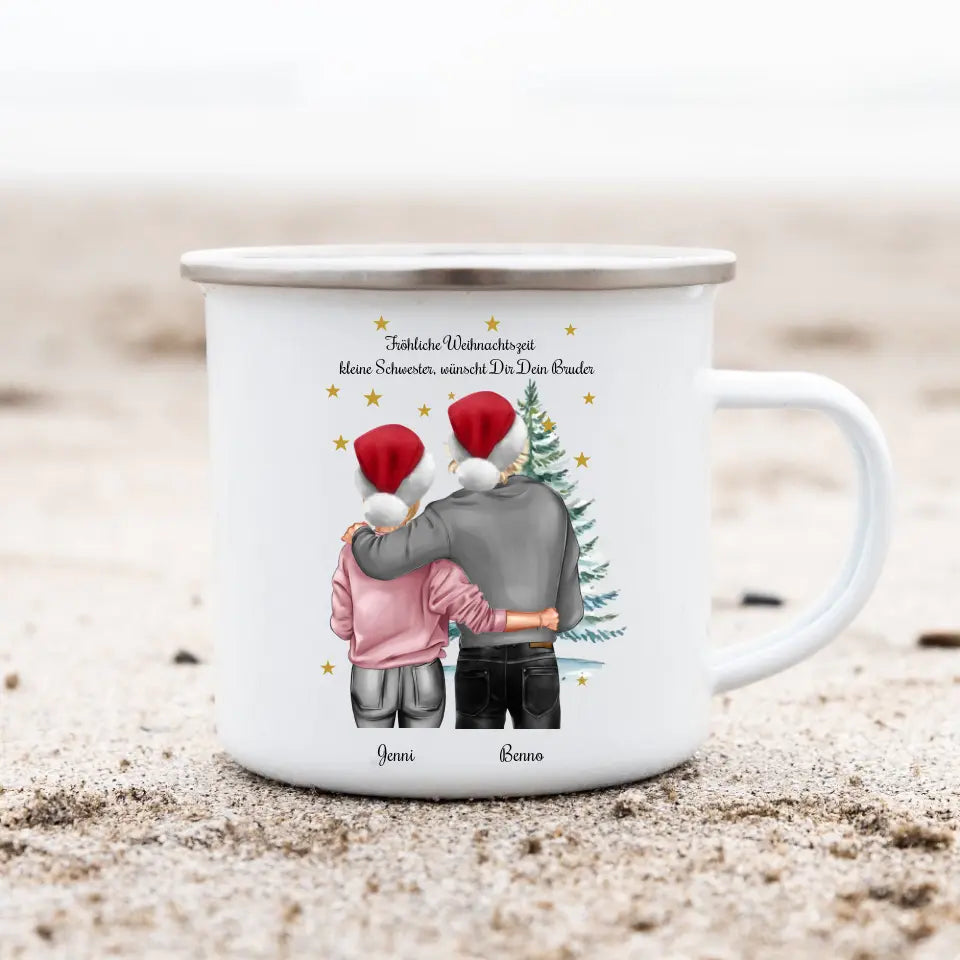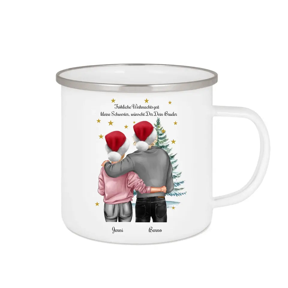 Personalisierte Tasse Weihnachten für Paare, Freundin, Freund - Weihnachtsgeschenk Emaille Tasse
