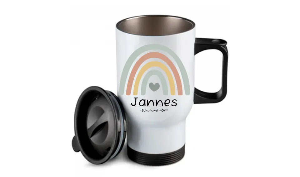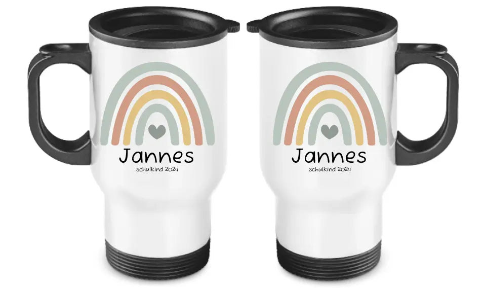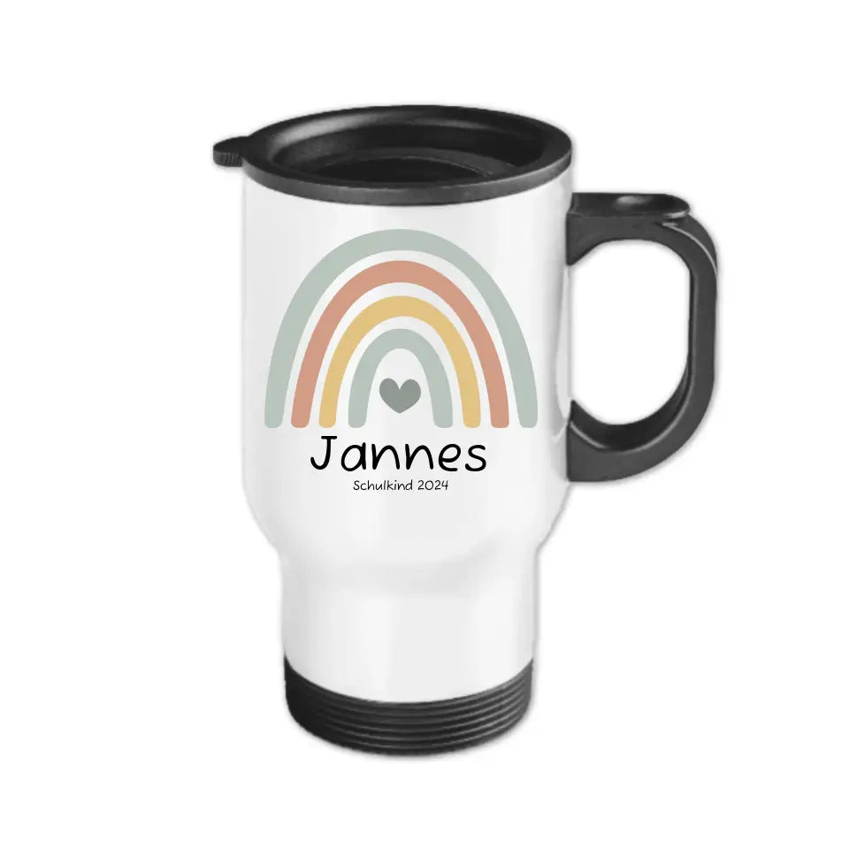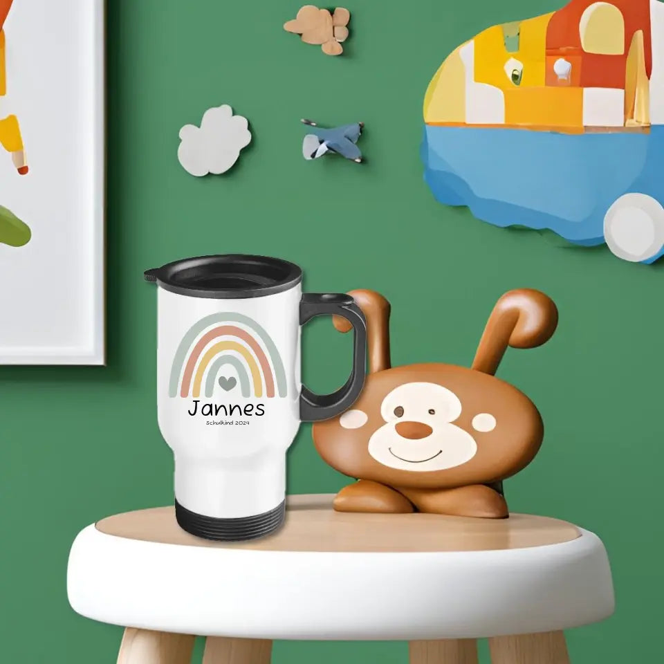 Personalisierter Becher Kinder aus Edelstahl mit Regenbogen Namen und Text Junge | Kinderbecher Geschenk Einschulung & Geburtstag | Edelstahl-Thermobecher für Kinder personalisiert