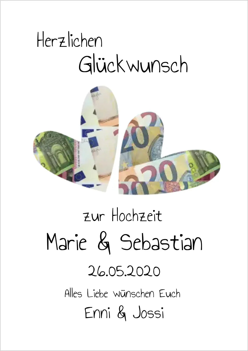 Geldgeschenk Wunscherfüller - Personalisiertes Geldgeschenk zur Hochzeit - Hochzeitsgeschenk Herzen zum selberausschneiden
