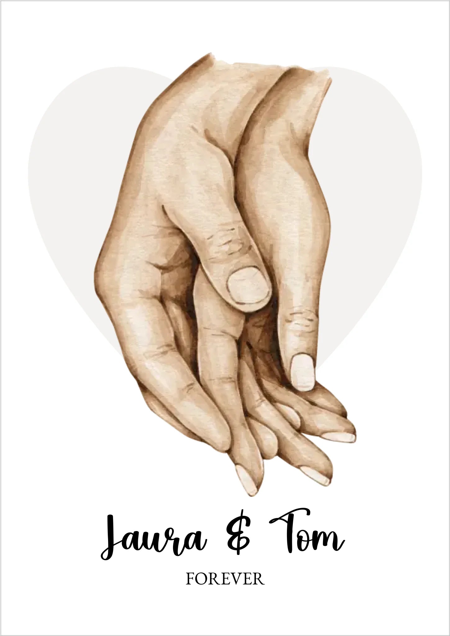 Personalisiertes Poster mit Händemotiv für Verliebte, Verlobte, Verheiratete als Geschenk zum Jahrestag, Hochzeitstag, Valentinstag und zum Geburtstag.