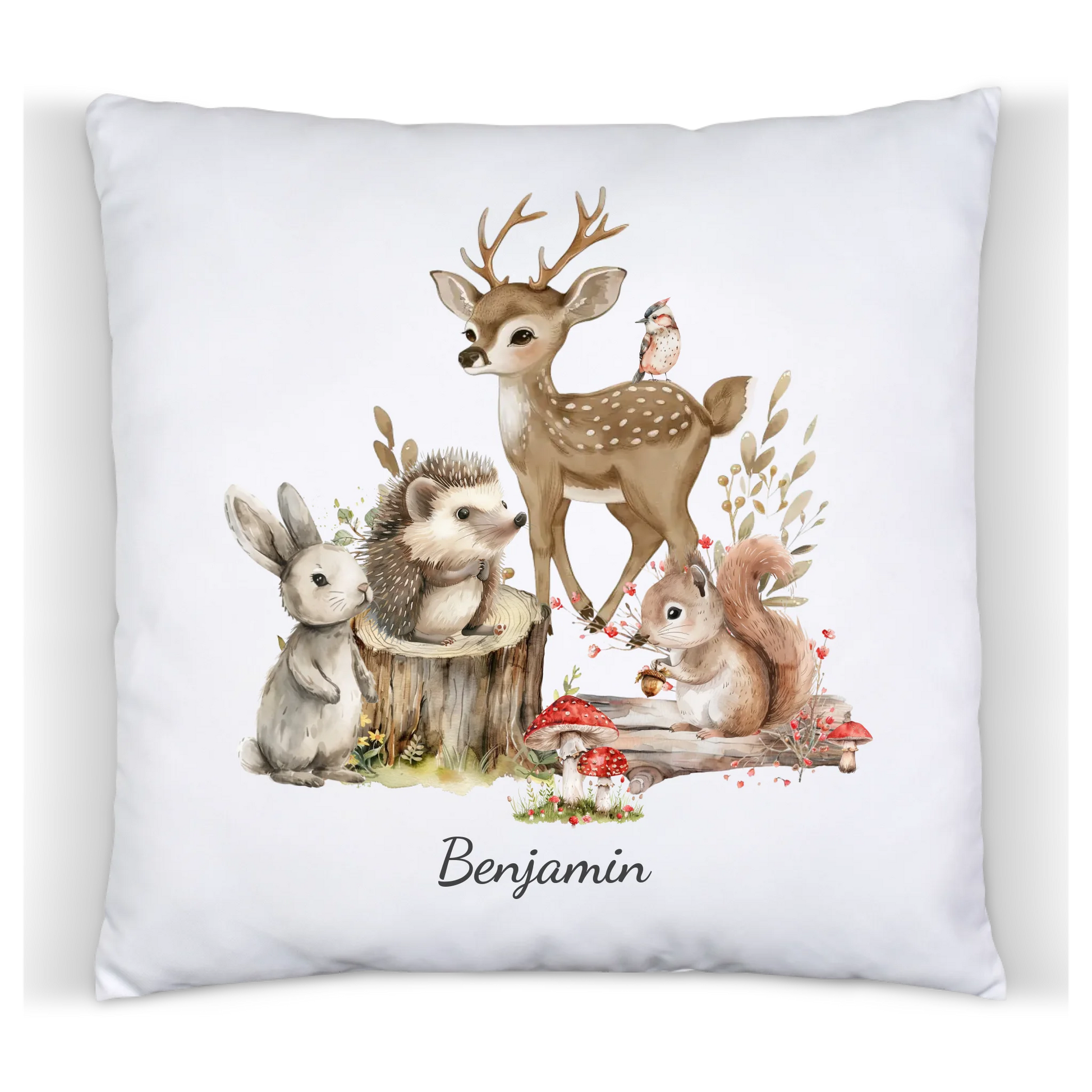 Personalisiertes Kinder Kissen mit Waldtieren- Geschenkidee Geburtstag, Einschulung, Weihnachten