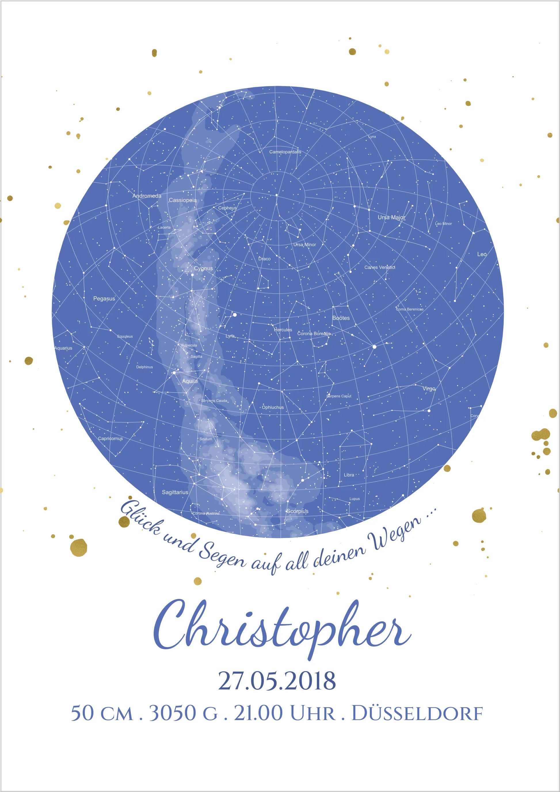 Geburtsgeschenk & Taufgeschenk Geburtsanzeige | Poster Sternkarte Design | Babygeschenk zur Geburt, zur Taufe | Sternenbild Junge