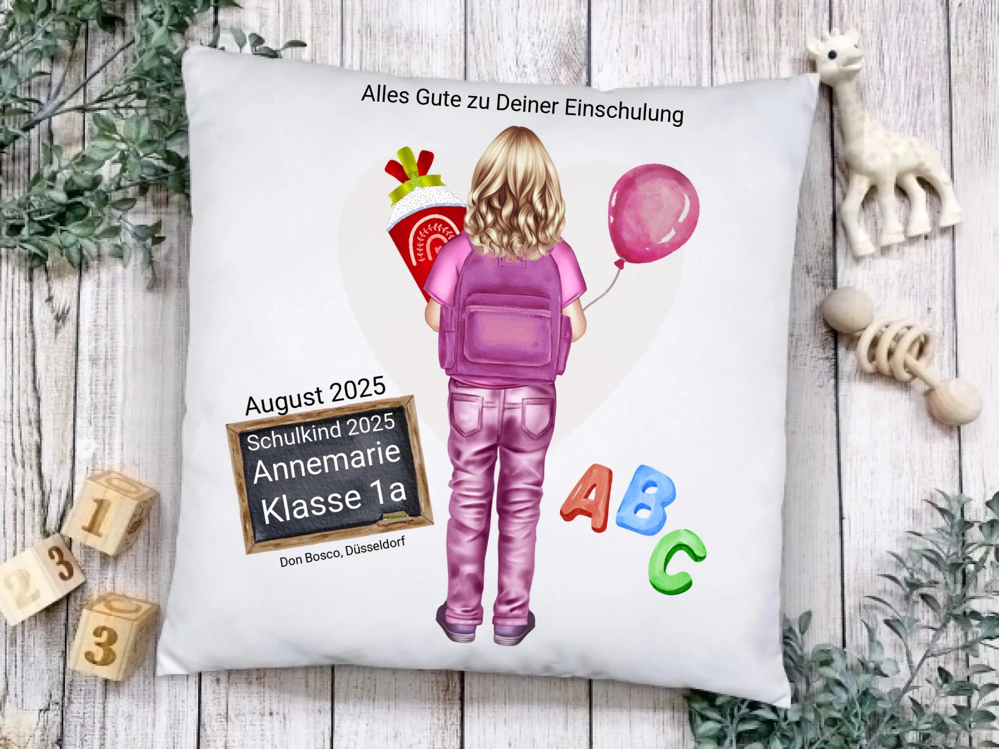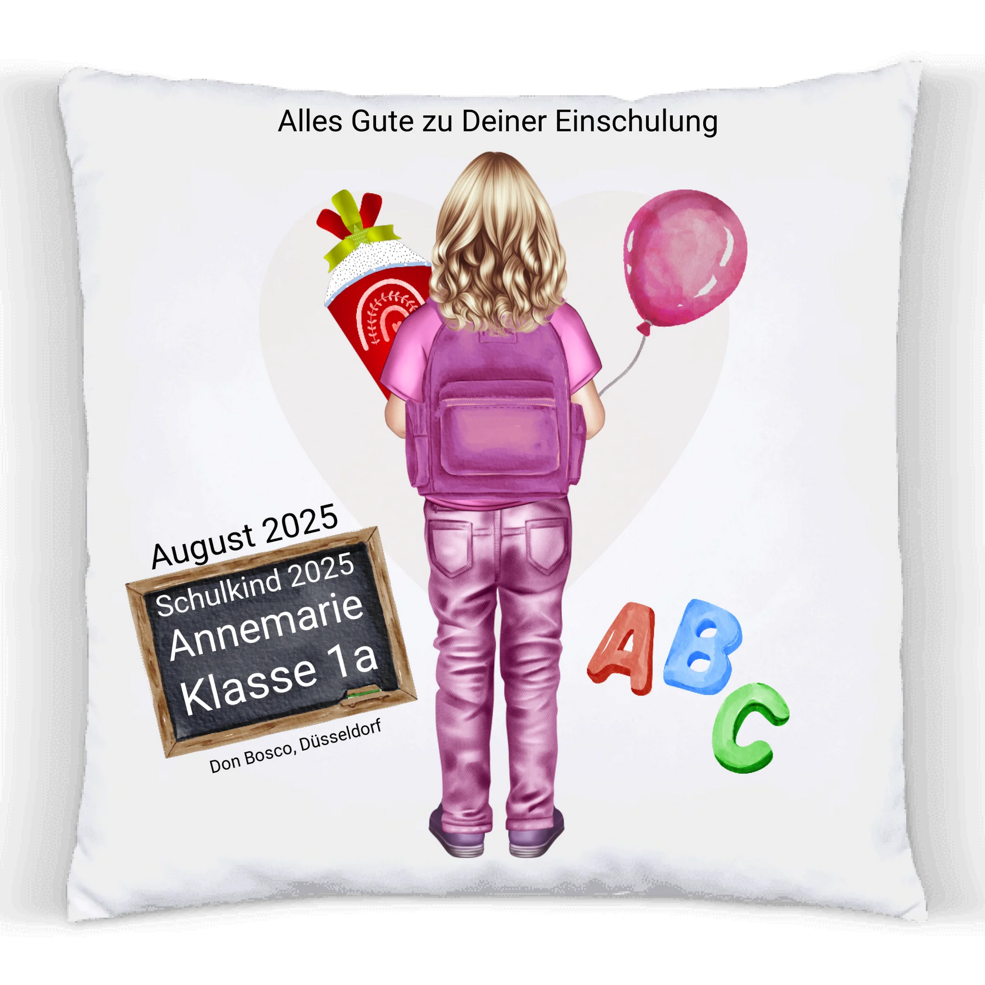 Schulbegin Schulkind 2025 - Einsschulungsgeschenk personalisiertes Kissen Mädchen