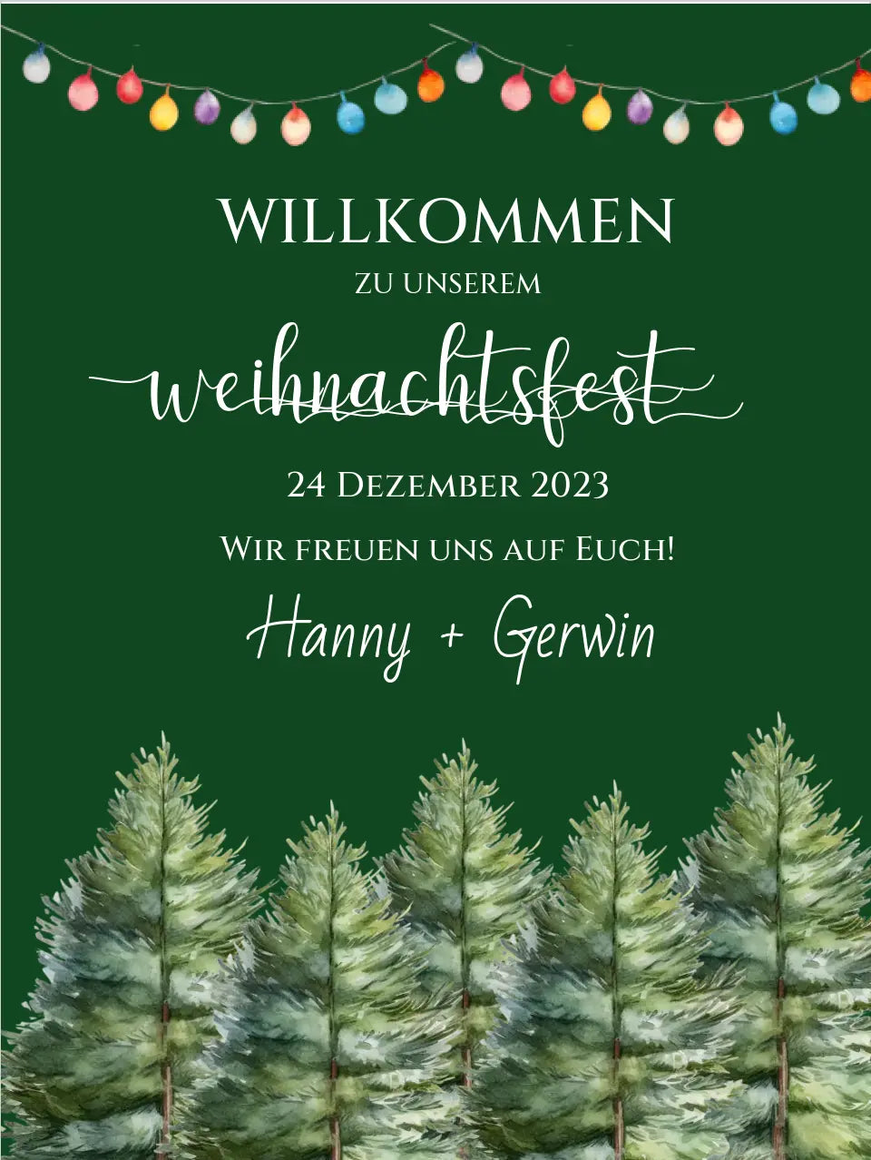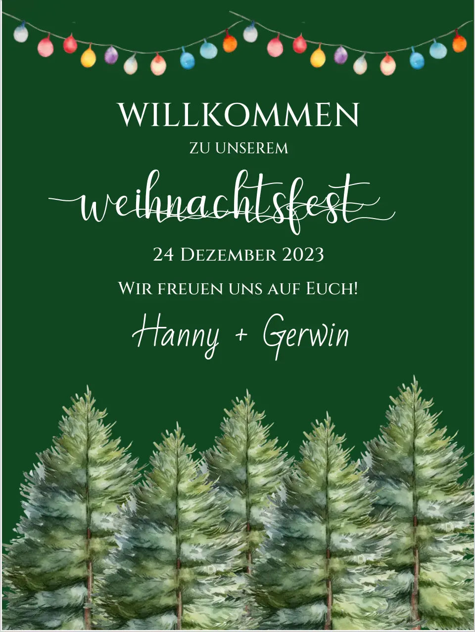 Weihnachtsschild Willkommen mit Tannenbäumen | Weihnachtsposter | Willkommensschild Weihnachten | Einladung Weihnachten | Weihnachten Einladung