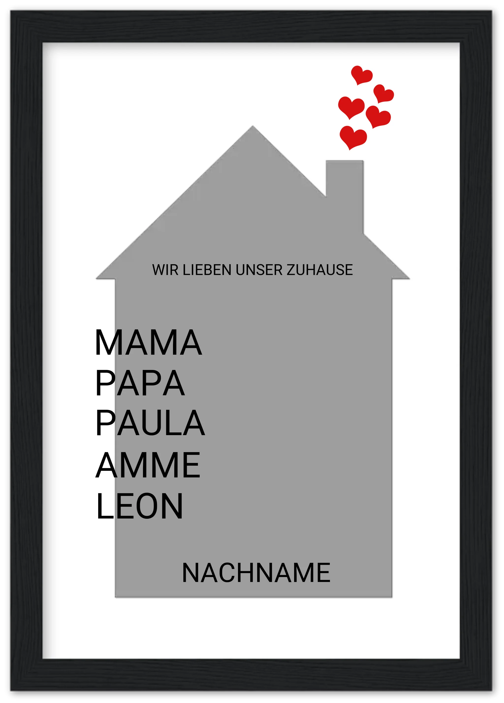Familienhaus mit Namen online gestalten | Zeitraum-Kunstdruck