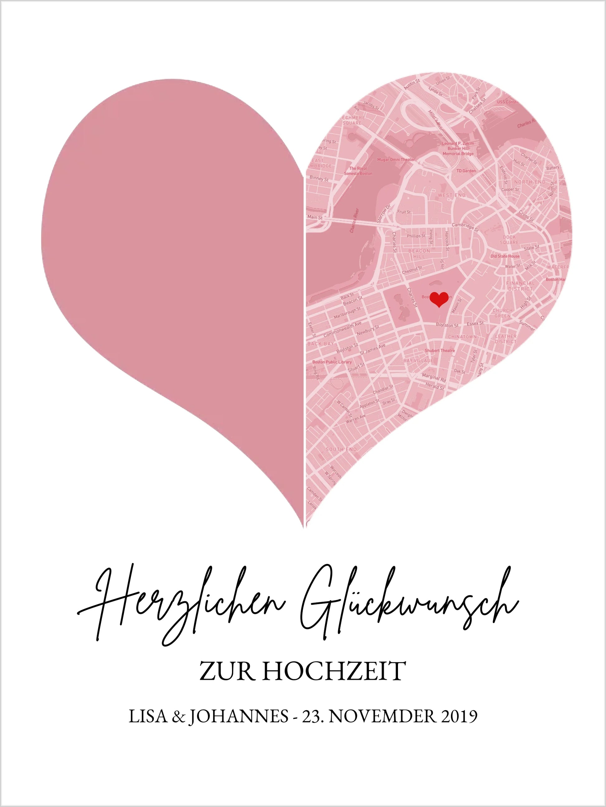 Hochzeitsgeschenk Fotoposter mit Stadtkarte | Koordinaten Fotoposter zur Hochzeit | Hochzeitstag Jahrestag Valentinstag