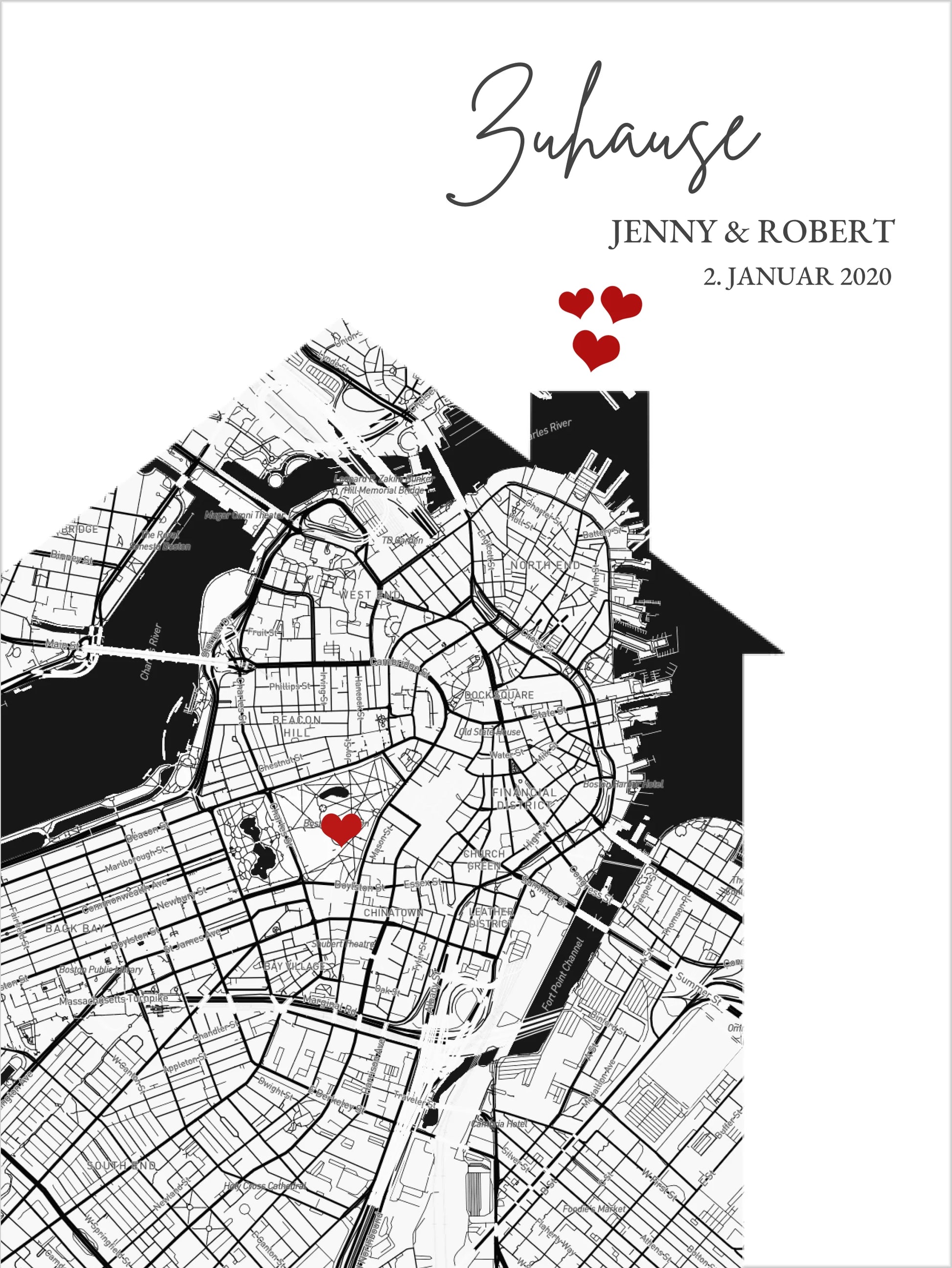Zuhause Poster Haus personalisiertes Geschenk | Stadtkarte Einzugsgeschenk | Koordinaten Bild Richtfest